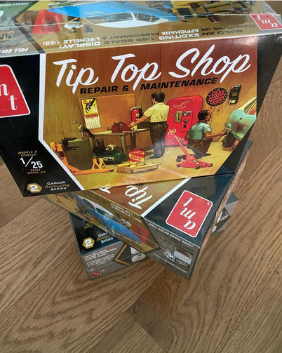 kit includes 2 figures , workbench, jack and jack stands, engine hoist, air compressor, and more!!!!